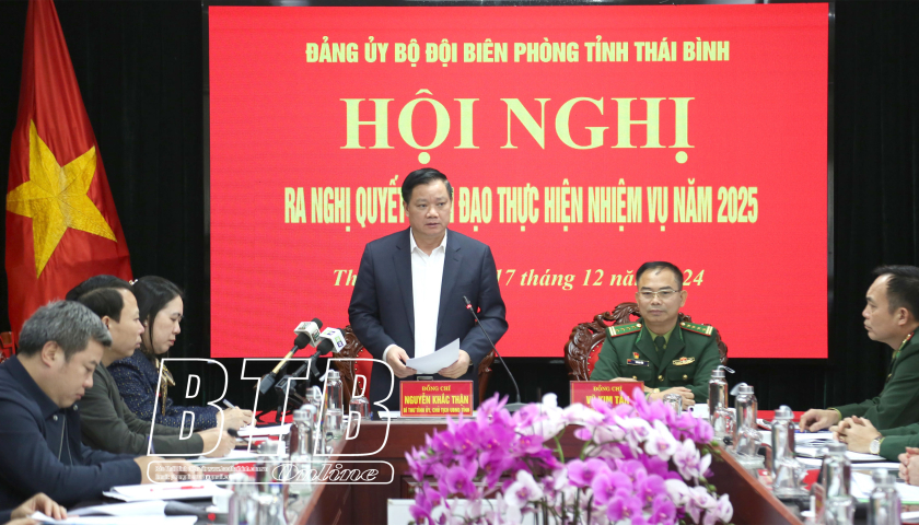 Chiều ngày 17/12, Đảng ủy Bộ đội Biên phòng (BĐBP) tỉnh tổ chức hội nghị ra nghị quyết lãnh đạo thực hiện nhiệm vụ năm 2025. Đồng chí Nguyễn Khắc Thận, Bí thư Tỉnh ủy, Chủ tịch UBND tỉnh dự hội nghị.