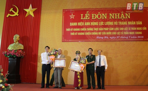 Sáng ngày 27/7, tại Trung tâm hội nghị huyện Hưng Hà, UBND huyện Hưng Hà tổ chức lễ đón nhận danh hiệu Anh hùng Lực lượng vũ trang nhân dân cho liệt sĩ Trần Ngọc Cửu, xã Tân Lễ và liệt sỹ Trần Ngọc Chung,...