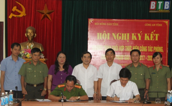 Chiều ngày 2/10, Hội Nông dân tỉnh và Công an tỉnh ký kết chương trình phối hợp thực hiện công tác phòng, chống tội phạm giai đoạn 2017 - 2021.