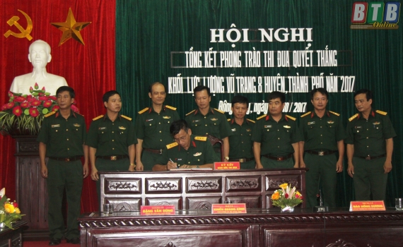 Chiều ngày 5/10, tại huyện Đông Hưng, khối lực lượng vũ trang (LLVT) 8 huyện, thành phố tổ chức hội nghị tổng kết phong trào thi đua quyết thắng năm 2017.