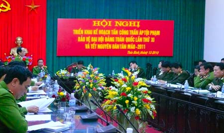Công an tỉnh Thái Bình vừa triển khai công tác tấn công trấn áp tội phạm bảo đảm an ninh trật tự bảo vệ Đại hội Đảng toàn quốc lần thứ XI và Tết Nguyên đán Tân Mão năm 2011.