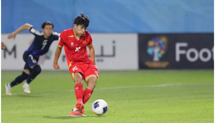 Bàn thắng trên chấm phạt đền của Trần Gia Bảo ở phút bù hiệp hai giúp Việt Nam hòa Nhật Bản 1-1 ở lượt hai bảng B U17 châu Á 2025.