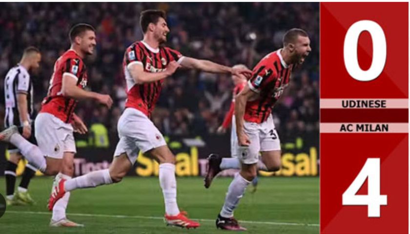Kết quả bàn thắng Udinese vs AC Milan: 0-4 (Vòng 32 Serie A 2024/25)