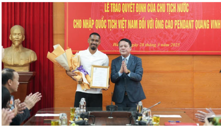 Cầu thủ Cao Pendant Quang Vinh chính thức trở thành công dân Việt Nam