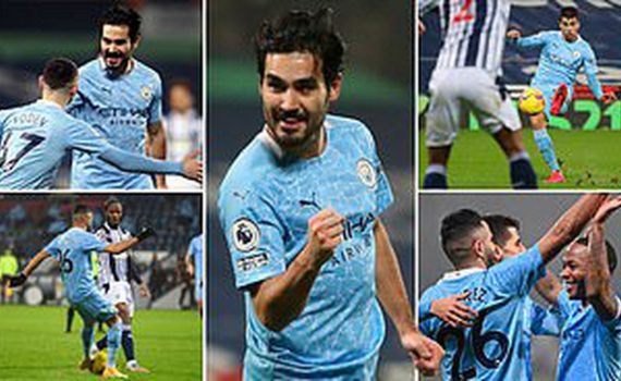 Giành chiến thắng với tỉ số 5-0 trước West Brom, Man City mạnh mẽ bước lên ngôi đầu BXH Ngoại hạng Anh.