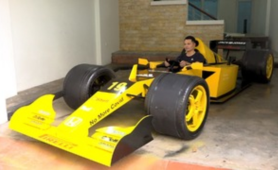 Anh Thái Trung Hiếu bỏ 50 triệu đồng, tự thiết kế và lắp ráp mô hình chiếc xe đua F1 với kích thước như thật để thỏa mãn đam mê khi giải đấu ở Hà Nội bị hoãn.