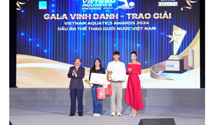 Kình ngư Nguyễn Huy Hoàng và Võ Thị Mỹ Tiên được Hiệp hội Thể thao dưới nước (VASA) vinh danh.