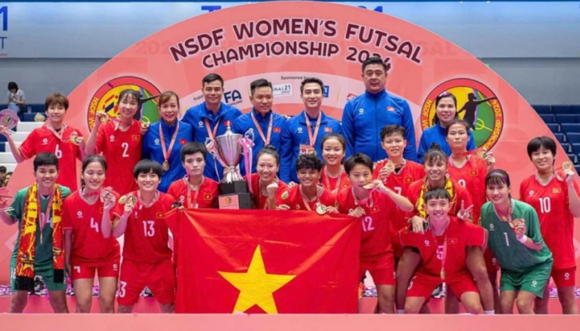 Đội tuyển futsal nữ Việt Nam đánh bại đội tuyển futsal nữ Trung Quốc với tỷ số 3-0, bảo vệ thành tích toàn thắng tại giải NSDF Women’s Futsal Championship 2024.