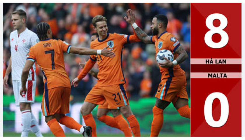 Kết quả bàn thắng Hà Lan vs Malta: 8-0 (Vòng loại World Cup 2026)
