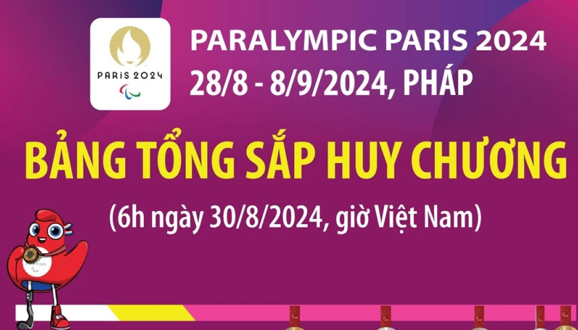 Paralympic Paris 2024: Bảng tổng sắp huy chương tính đến 6h ngày 30/8
