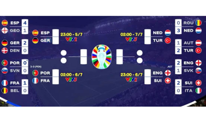 Lịch thi đấu và trực tiếp tứ kết EURO 2024 trên VTV