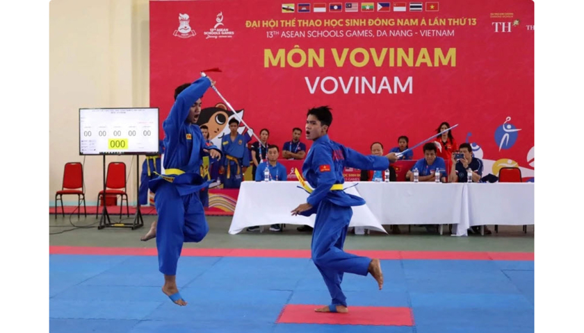 Ngày 3/6, tại Nhà thi đấu Võ thuật, khuôn viên Câu lạc bộ Bơi-Lặn Đà Nẵng diễn ra các trận thi đấu môn Vovinam trong khuôn khổ Đại hội Thể thao học sinh Đông Nam Á lần thứ 13.