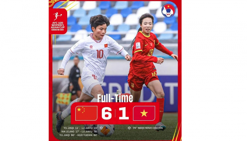 Đội tuyển nữ U20 Việt Nam thua đậm Trung Quốc trong trận đấu cuối cùng tại giải nữ U20 châu Á 2024.