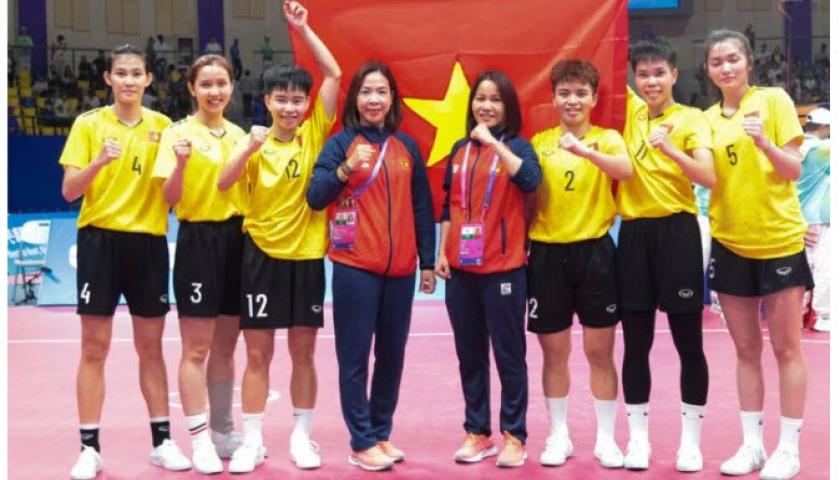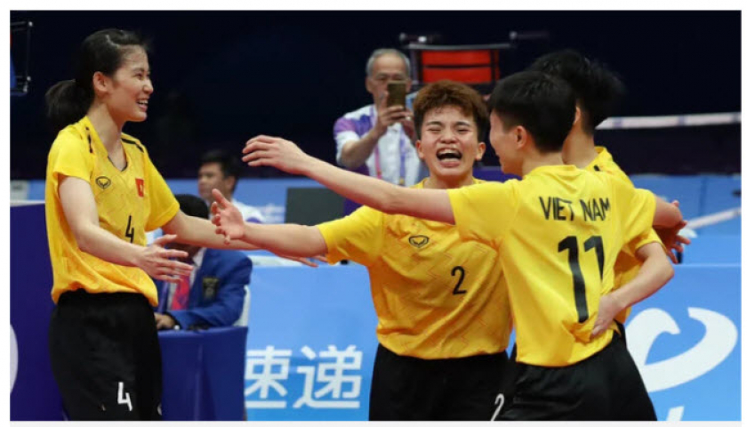 Đội tuyển cầu mây Việt Nam đánh bại Hàn Quốc ở nội dung regu nữ ASIAD 19.
