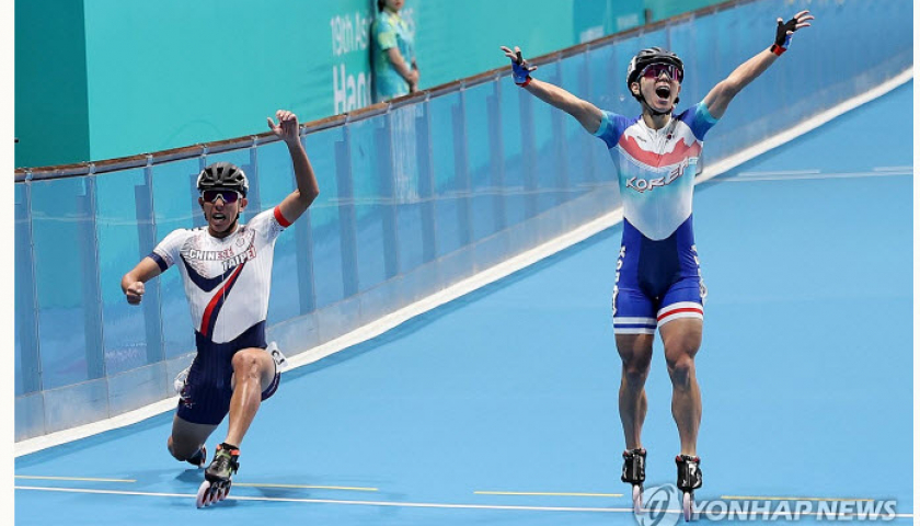 Vui mừng khi sắp cán đích và không để ý đối thủ, Jung Cheol-won khiến Hàn Quốc hụt HC vàng trượt patin tiếp sức nam tại Asiad 19.