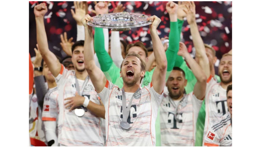 Khoảnh khắc lần đầu nâng cúp Bundesliga của Harry Kane
