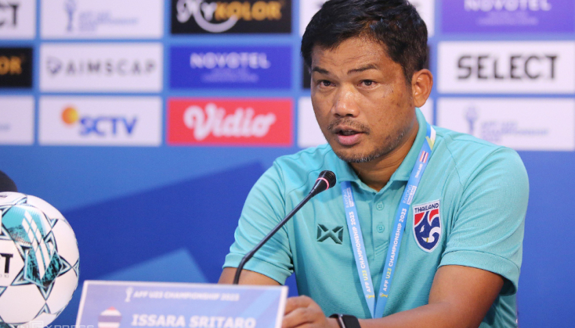 HLV Issara Sritaro thất vọng khi Thái Lan thua Indonesia 1-3 trong trận bán kết U23 Đông Nam Á 2023, dù được chơi trên sân nhà.