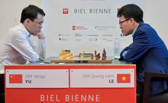 Kỳ thủ số một Việt Nam Lê Quang Liêm cầm quân đen, nhưng hạ số hai Trung Quốc Yu Yangyi (Dư Ương Y) ở cờ tiêu chuẩn Biel Grandmaster.