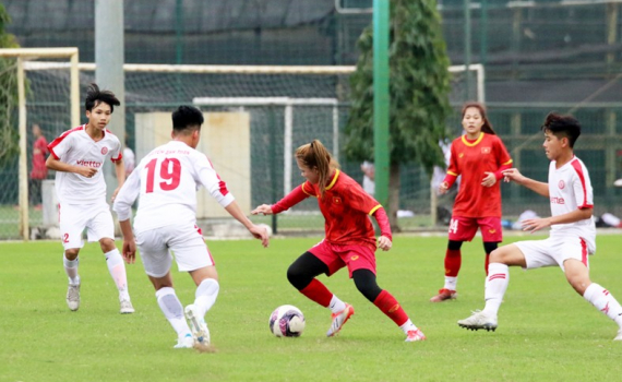 Sau 1 tuần tập trung tại Trung tâm đào tạo bóng đá trẻ Việt Nam, đội tuyển U20 nữ quốc gia có bài kiểm tra đầu tiên khi đọ sức cùng U15 Viettel.