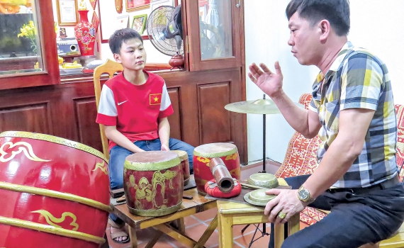 " NSƯT Đình Cương tự hào rằng niềm đam mê ấy không chỉ được truyền đến các thế hệ học trò, mà con trai Đình Tân cũng đã kế thừa đam mê với những nhịp phách, tiếng đàn, tiếng trống, tiếng nhị…"