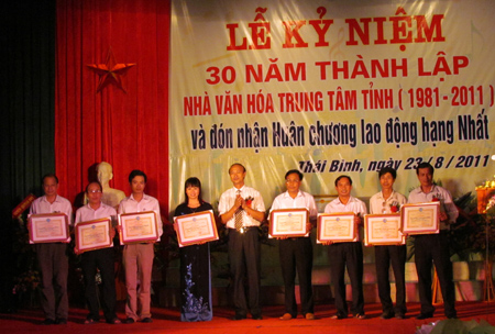 Ngày 23-8-2011, Nhà văn hoá (NVH) Trung tâm tỉnh đã long trọng tổ chức Lễ kỷ niệm 30 năm thành lập và đón nhận Huân chương Lao động hạng nhất.