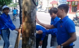 Huyện đoàn Tiền Hải ra quân bóc xóa quảng cáo, rao vặt sai quy định