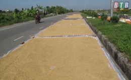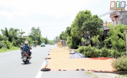 Đông Hưng: Phơi rơm, thóc trên đường gây mất an toàn giao thông