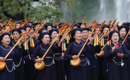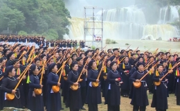 1.000 người đủ lứa tuổi mặc trang phục truyền thống Tày- Nùng cùng hát Then, đàn Tính tại danh thắng thác Bản Giốc, xác lập kỷ lục Việt Nam.