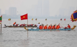 Sôi nổi bơi chải thuyền rồng tại Hà Nội