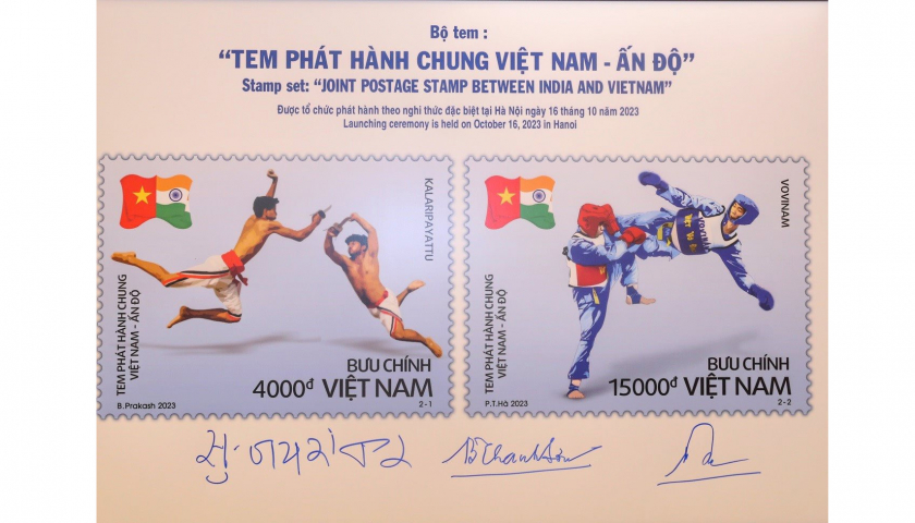 Hai môn võ dân tộc của Việt Nam và Ấn Độ được đưa lên bộ tem đặc biệt