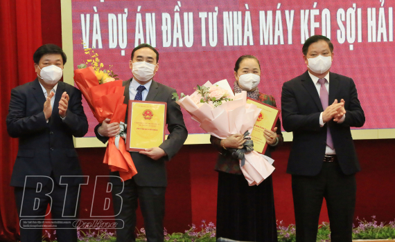 Chiều ngày 3/3, UBND tỉnh tổ chức trao giấy chứng nhận đăng ký đầu tư cho 2 dự án: nhà máy vải túi khí Asahi Kasei Việt Nam tại khu công nghiệp Tiền Hải (huyện Tiền Hải); nhà máy kéo sợi Hải Hà tại xã...