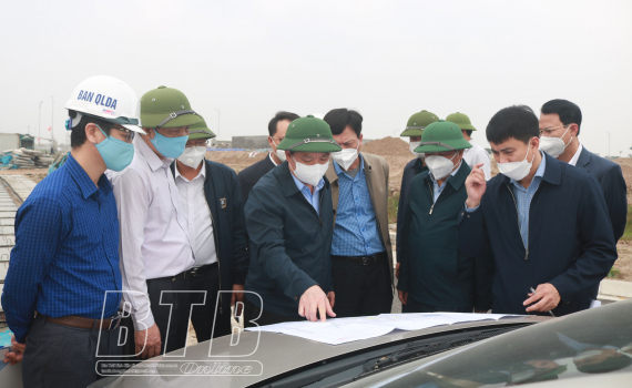 Đồng chí Nguyễn Khắc Thận, Phó Bí thư Tỉnh ủy, Chủ tịch UBND tỉnh kiểm tra tiến độ thực hiện dự án xây dựng trên địa bàn thành phố Thái Bình
