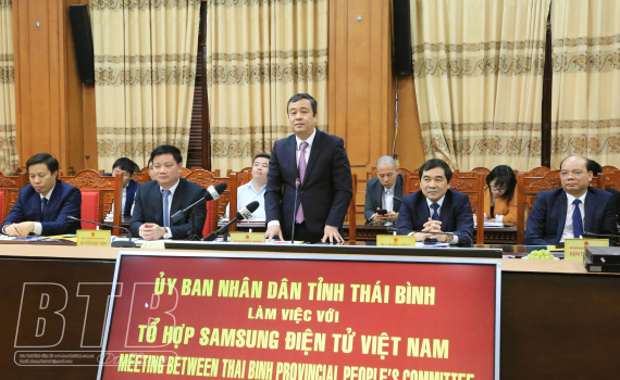 Các đồng chí lãnh đạo tỉnh tiếp và làm việc với đoàn công tác của Tổ hợp Samsung Việt Nam
