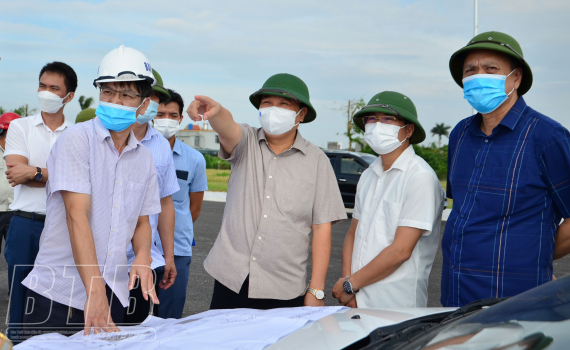 Đồng chí Nguyễn Khắc Thận, Phó Bí thư Tỉnh ủy, Chủ tịch UBND tỉnh kiểm tra, chỉ đạo công tác giải phóng mặt bằng và tiến độ thi công dự án tuyến đường bộ ven biển và dự án đường 221A