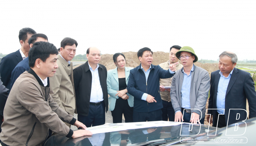 Các đồng chí lãnh đạo tỉnh kiểm tra tiến độ một số dự án giao thông tại huyện Vũ Thư