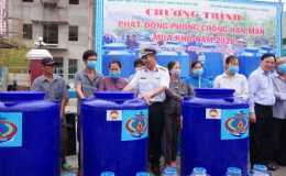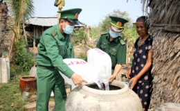 Nhằm giúp người dân vượt qua hạn mặn lịch sử đang diễn ra và phòng, chống dịch Covid-19, Bộ Tư lệnh (BTL) Vùng Cảnh sát biển 4 đã tặng nước ngọt và một số trang thiết bị .