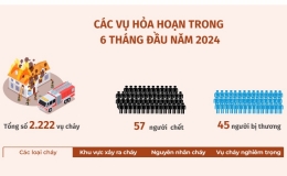 Báo cáo của Cục Phòng cháy, chữa cháy và Cứu nạn cứu hộ mới đây cho biết, trong 6 tháng đầu năm 2024, toàn quốc xảy ra 2.222 vụ cháy, làm chết 57 người,...
