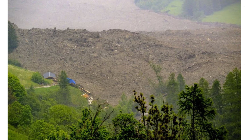 Sạt lở sông băng tại Thụy Sĩ, nhiều ngôi nhà bị ngập dưới bùn