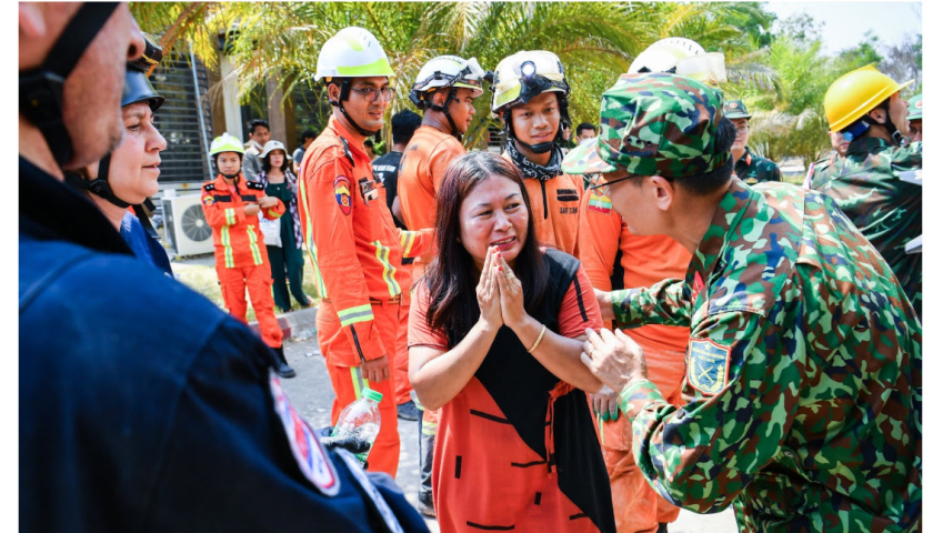 Dưới thời tiết oi nóng đầu tháng 4, hai đoàn cứu hộ Việt Nam vẫn đang tiếp tục chạy đua với thời gian để tìm kiếm các nạn nhân hiện vẫn còn mắc kẹt sau trận động đất tại Myanmar.