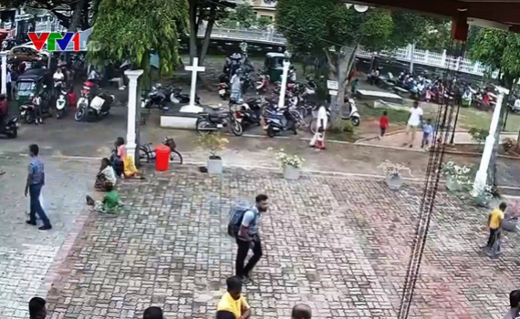Camera nhà thờ St Sebastian ghi lại khoảnh khắc 1 trong những kẻ đánh bom tự sát ở Sri Lanka bước vào nhà thờ trước khi kích nổ bom trong ba lô giết chết 50 người.