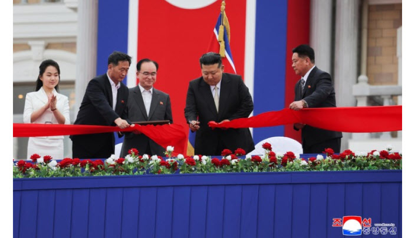 Lãnh đạo Kim Jong‑un cùng phu nhân Ri Sol‑ju và con gái Ju‑ae đã cắt băng khánh thành khu nghỉ dưỡng biển Wonsan Kalma.