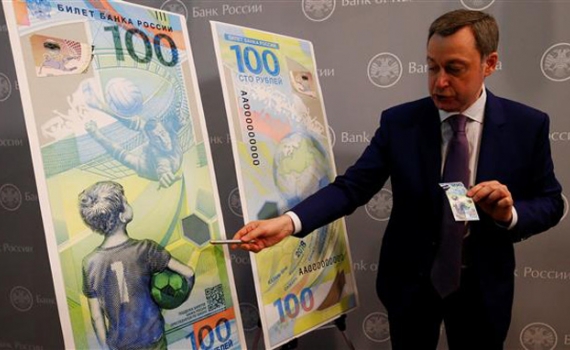Ngân hàng Trung ương Nga vừa phát hành tờ tiền giấy mới mệnh giá 100 Rub nhằm kỷ niệm sự kiện World Cup 2018 sắp được tổ chức ở Nga.