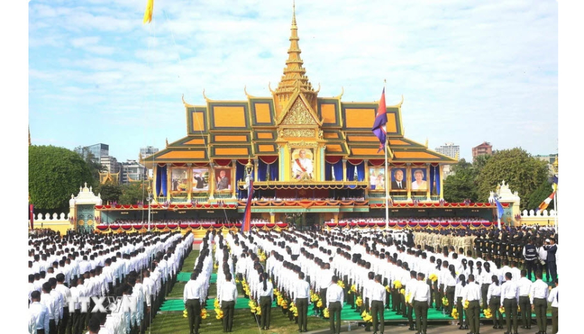 Quốc vương Norodom Sihamoni khẳng định Vương quốc Campuchia đang thừa hưởng những thành quả tích cực, vốn bắt nguồn từ sức mạnh xây dựng đất nước và bảo vệ tổ quốc trong sự hòa hợp của người dân.