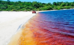 Hồ Lagoa da Araraquara ở Rio Grande del Norte có nước giống hệt màu sắc trong các chai nước ngọt nổi tiếng.