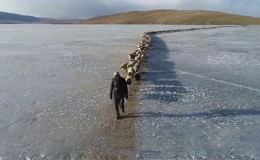 2.000 con cừu nối đuôi nhau vượt hồ băng