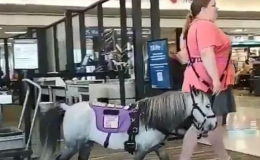 Một nữ hành khách Mỹ đã khiến mọi người bất ngờ khi dắt một con ngựa kích thước nhỏ lên máy bay.