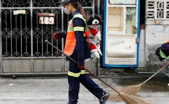 Thái Lan: Công nhân vệ sinh cõng cún quét rác