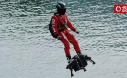 Ông Zapata cưỡi ván bay gắn 5 động cơ phản lực do chính mình chế tạo vượt thành công eo biển Dover dài 35 km trong 20 phút.