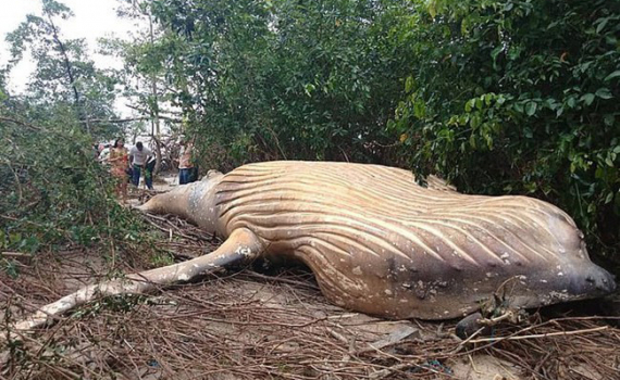 Một nhóm ngư dân gần đây đã phát hiện ra xác của một con cá voi lưng gù khổng lồ bị trôi dạt vào cửa sông rừng Amazon ở Brazil.