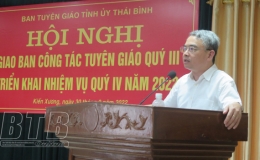 Sáng ngày 4/10, Ban Tuyên giáo Tỉnh ủy phối hợp với Ban Nội chính Tỉnh ủy, Sở Tư pháp, Thanh tra tỉnh tổ chức hội nghị tuyên truyền, quán triệt về phòng, chống tham nhũng, tiêu cực tại huyện Tiền Hải. Đồng chí Phạm Đồng Thụy, Ủy viên Ban Thường vụ, Trưởng ban Tuyên giáo Tỉnh ủy dự hội nghị.